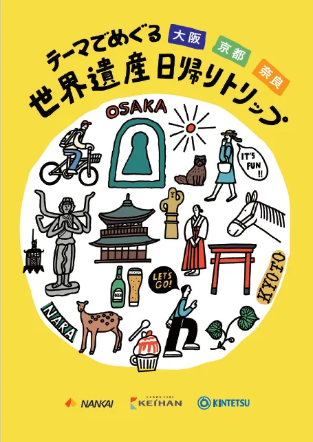 南海電気鉄道株式会社(社長:遠北 光彦)と京阪ホールディングス株式会社(社長:石丸 昌宏)、近畿日本鉄道株式会社(社長:都司 尚)では、パンフレット「テーマでめぐる 大阪 京都 奈良 世界遺産日帰りトリップ」を制作し、2019年9月13日(金)から南海電車・京阪電車・近鉄電車の主要駅で順次配布します。
