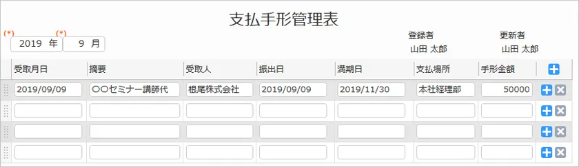 「支払手形管理表」アプリ画面