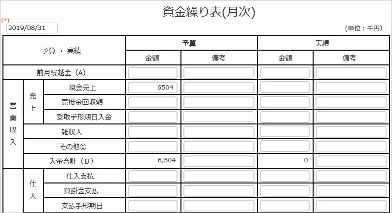 「資金繰り表」アプリ画面(月次)