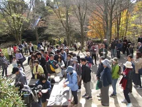 園内の木々は10月中旬より色付き始め、11月3日には例年美しい紅葉の錦模様が見られます。本格的な冬の寒さを迎える前に、六甲高山植物園のアイドル「小便小僧」に暖かいマントをまとわせるこの行事は、今回で46回目を迎え、毎年多くの方にお越しいただいている人気の行事です。