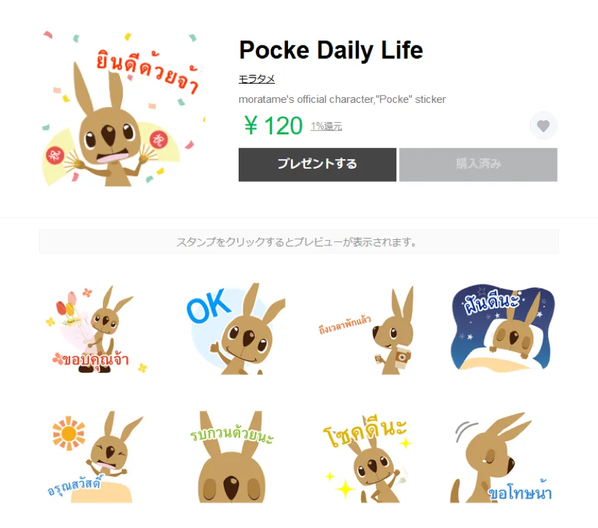【タイ国版モラタメ『Happix』】 【タイ語版ポッケLINEスタンプの一例】