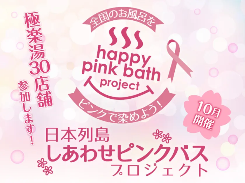 スーパー銭湯を運営する株式会社極楽湯(本社:東京都千代田区、代表取締役社長:新川 隆丈)は、ピンクリボン月間にあわせて行われる「日本列島しあわせピンクバスプロジェクト」への参加が決定しました。2019年10月1日(火)~10月31日(木)の期間中、直営30店舗にて順次、お風呂イベント「しあわせピンクリボンの湯」を開催します。