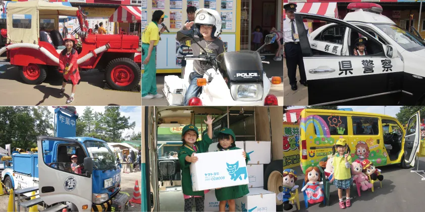 普段はおもちゃでしか接することの出来ないパトカーや消防車等の緊急車両、建設車両に商用車、またキャラクターカーやレーシングカー等、子供たちにとって憧れの車、地域で活躍している車合計約50台の実車を一堂に会し、近くで見たり、触れたり、乗ったりと実際に『はたらくくるま』に接してもらう事で、お子様だけでなく、大人の方も思う存分楽しみながら学んで頂けるイベントとなっております。