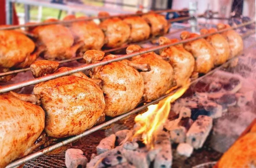 15種類もの独自に調合したハーブとスパイスに漬け込んだチキンを、低温調理でうまみを凝縮させ、肉をしっとり柔らかくします。さらに、それを遠赤外線でじっくりくるくると回して焼くことで、中はしっとりジューシー、ふわふわで外がカラッ、パリっという黄金のおいしさを実現しました。くるくると回しながら焼く際に漂う香りは、五感を刺激します。