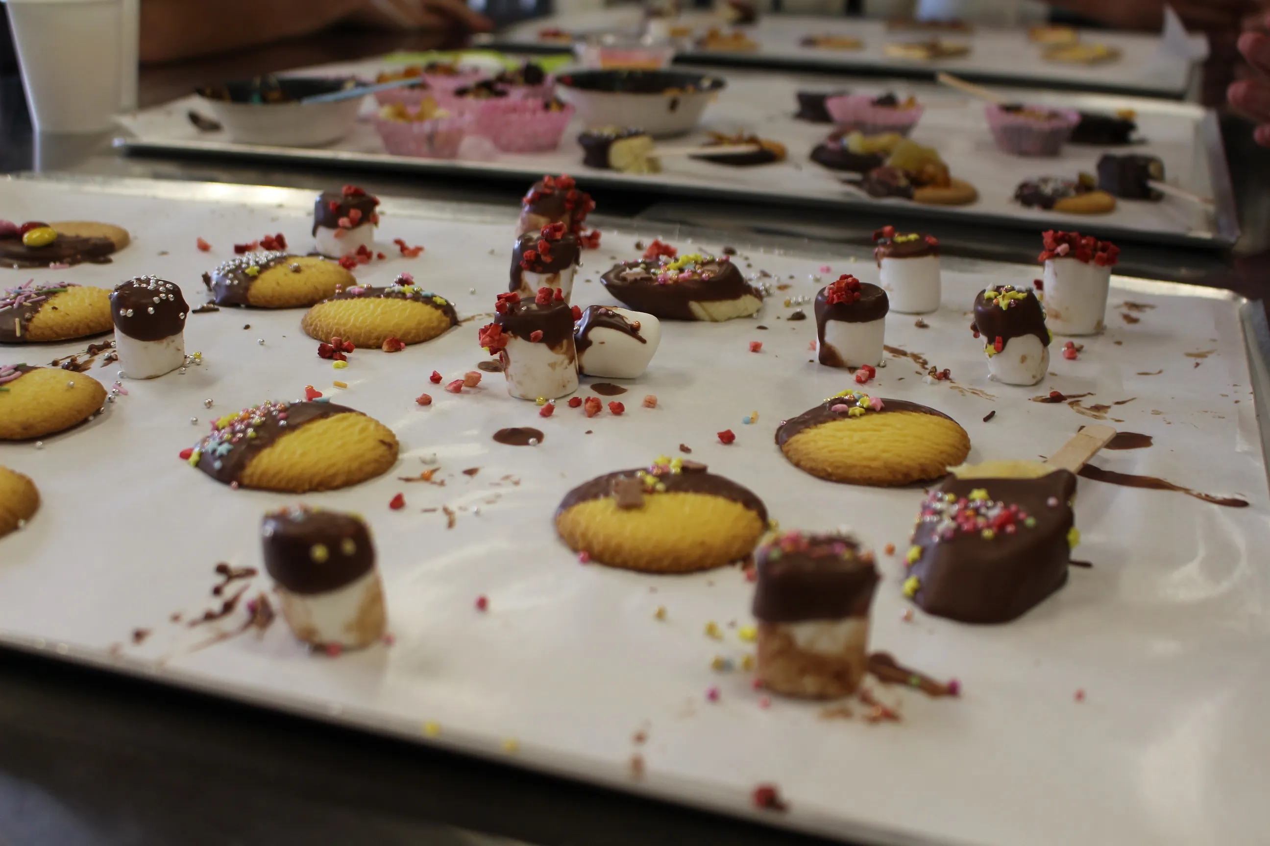 Chocolate Academy当日は、本物のカカオを使った講義や作業見学によるチョコレートのプロセス講座があり、製造体験では、障がい者社員が先生になって子供達をサポートしました。出来上がった商品は実店舗に陳列し、親子販売体験を行っています。