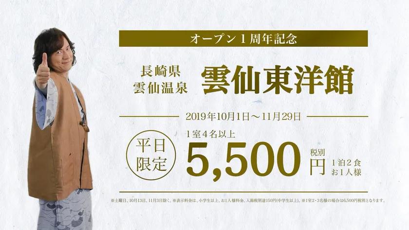 湯快リゾート雲仙温泉 雲仙東洋館は、2019年10月、皆様に支えられオープン1周年を迎えます。