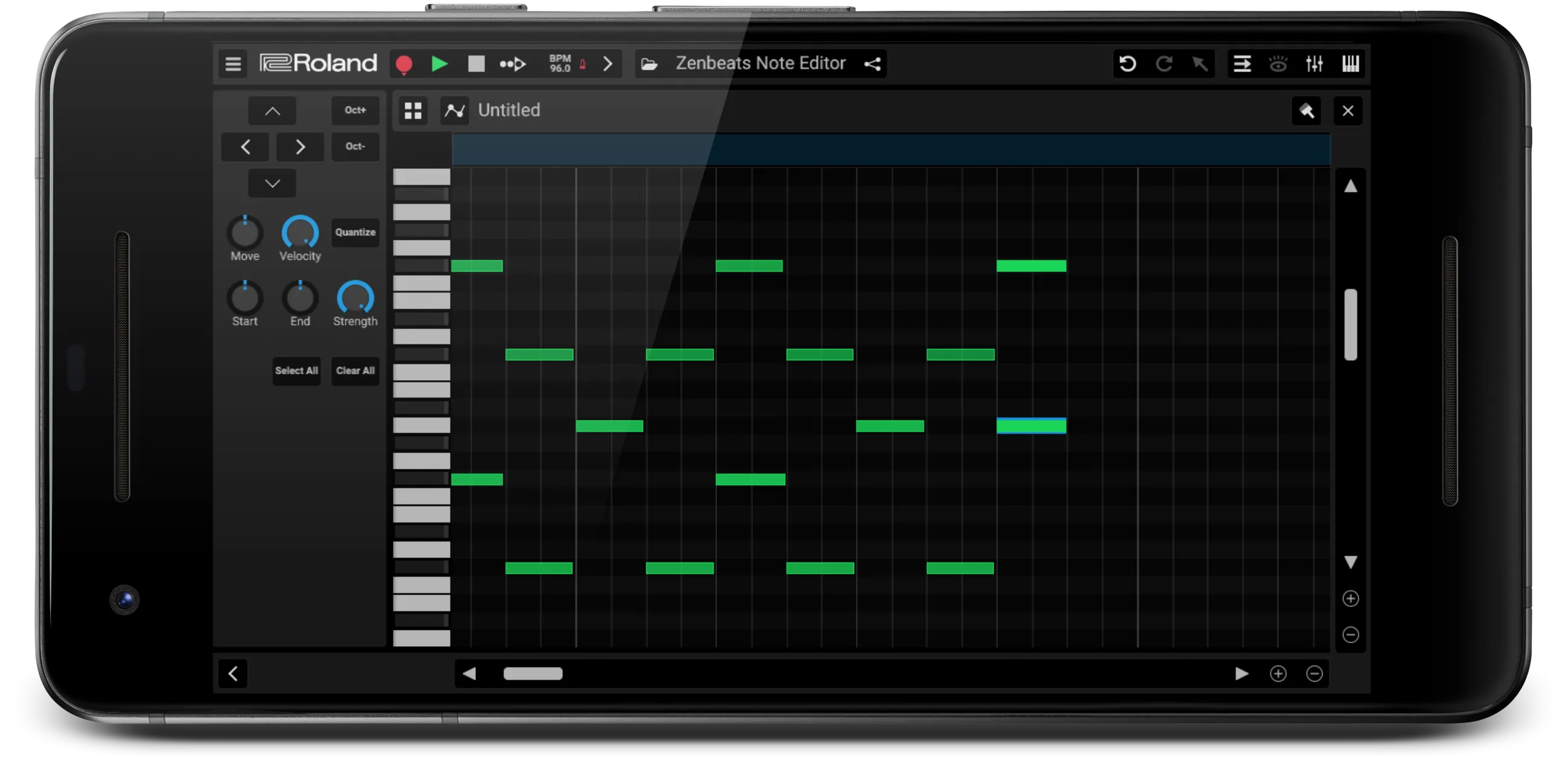 ゲーム感覚でメロディーを作ることができる「ノート・エディター」画面