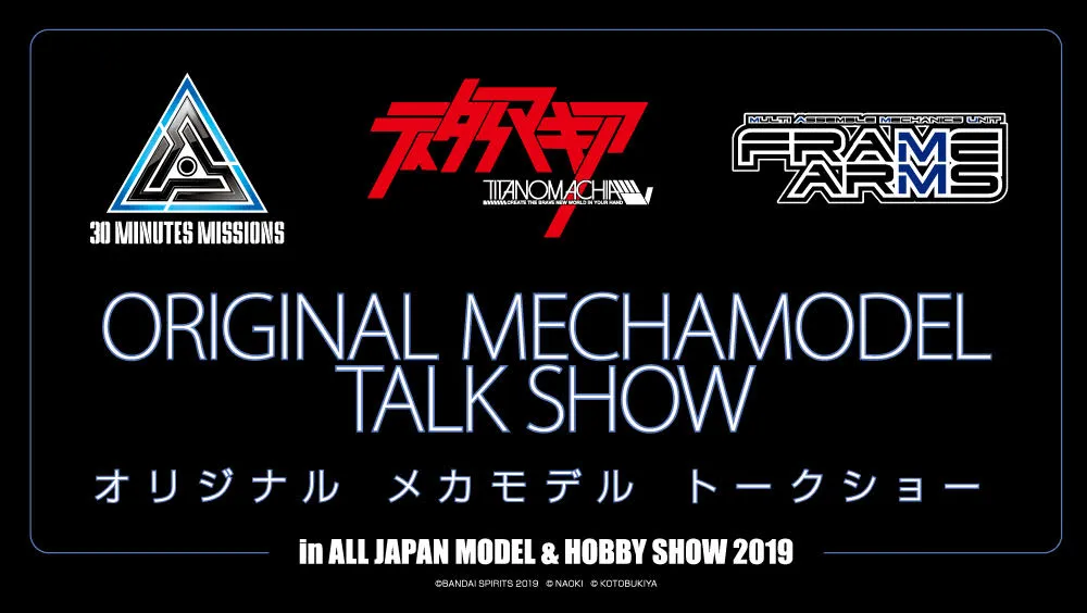 「ティタノマキア」、「30 MINUTES MISSIONS」、「フレームアームズ」等、近年模型をベースに作られたオリジナルロボットシリーズについて関係者が語るトークショーを実施いたします。