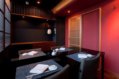 2名~6名様までご利用可能な完全個室は、黒を基調にしたモダンで落ち着いた雰囲気が重要な接待や大切なシーンでも、ここぞという時の切り札になる神楽坂の隠れ家です。