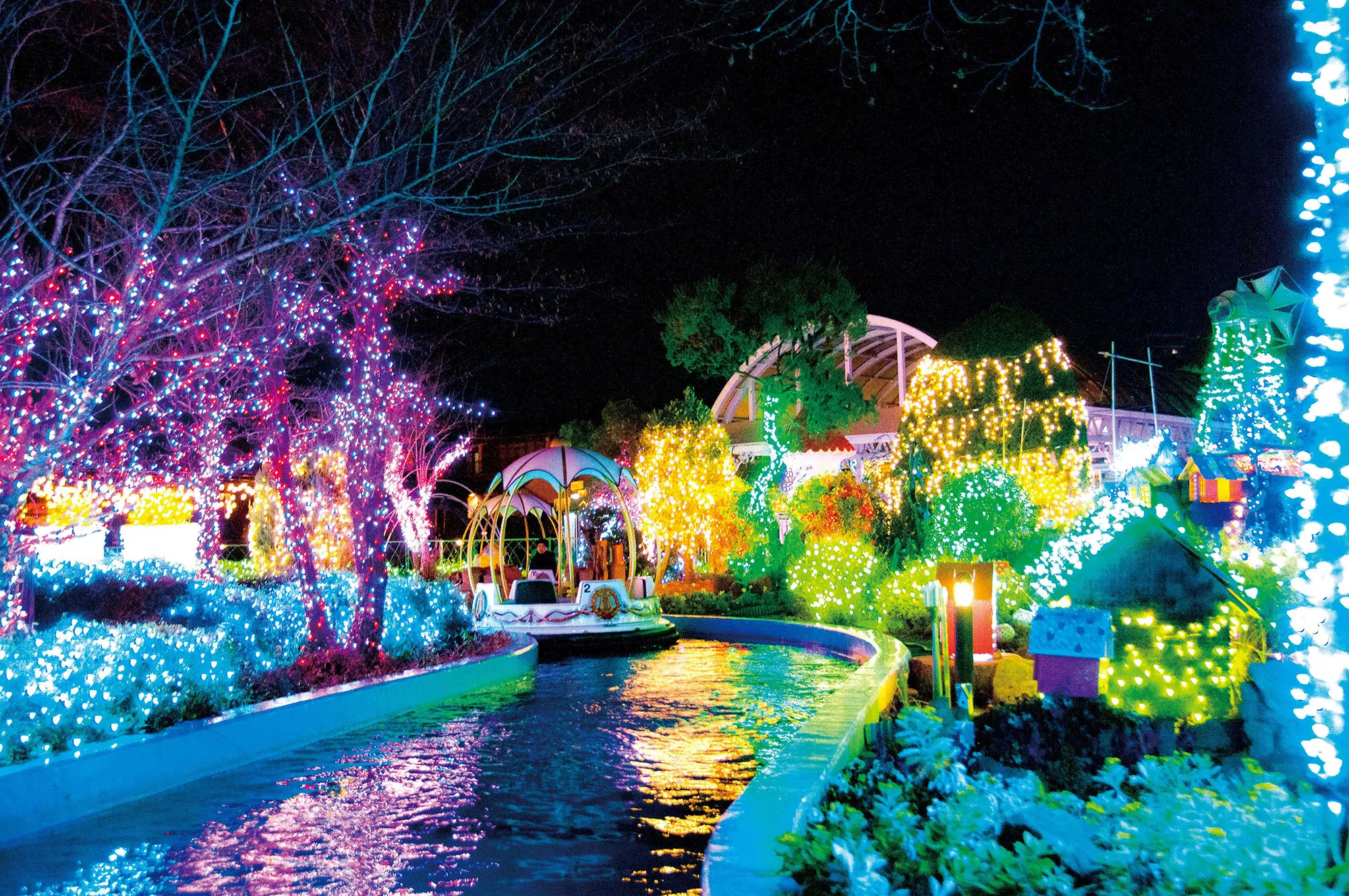 | ファンタジークルーズ ゆっくりと水路を流れるボートに乗って、移り変わるイルミネーションが楽しめます。 |