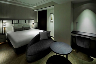 パブリックエリアからゲストルームエリアに渡って、空間のカラースキームをモノトーンで押さえたSECESSIONモチーフを展開し、さりげなく江戸切子等の日本のモチーフを取り込むことでここにしかない、「NIHONBASHI SECESSION」を実現しました。