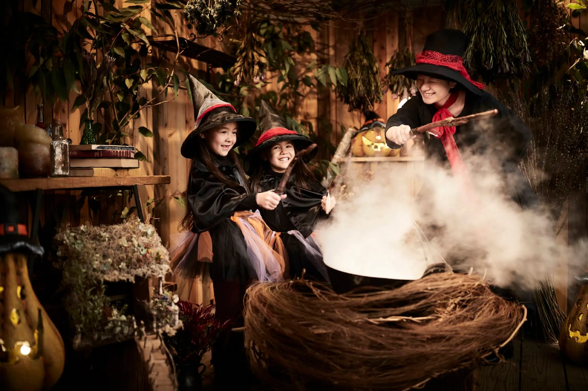 帽子やマントのワンポイント仮装からフル仮装まで、家族みんなで楽しめる衣装を用意しています。ハロウィンメイクのサービスもあり、本格的な仮装が気軽に楽しめます。フル仮装とフルメイクをして、モンスターになりきるのもおすすめです。