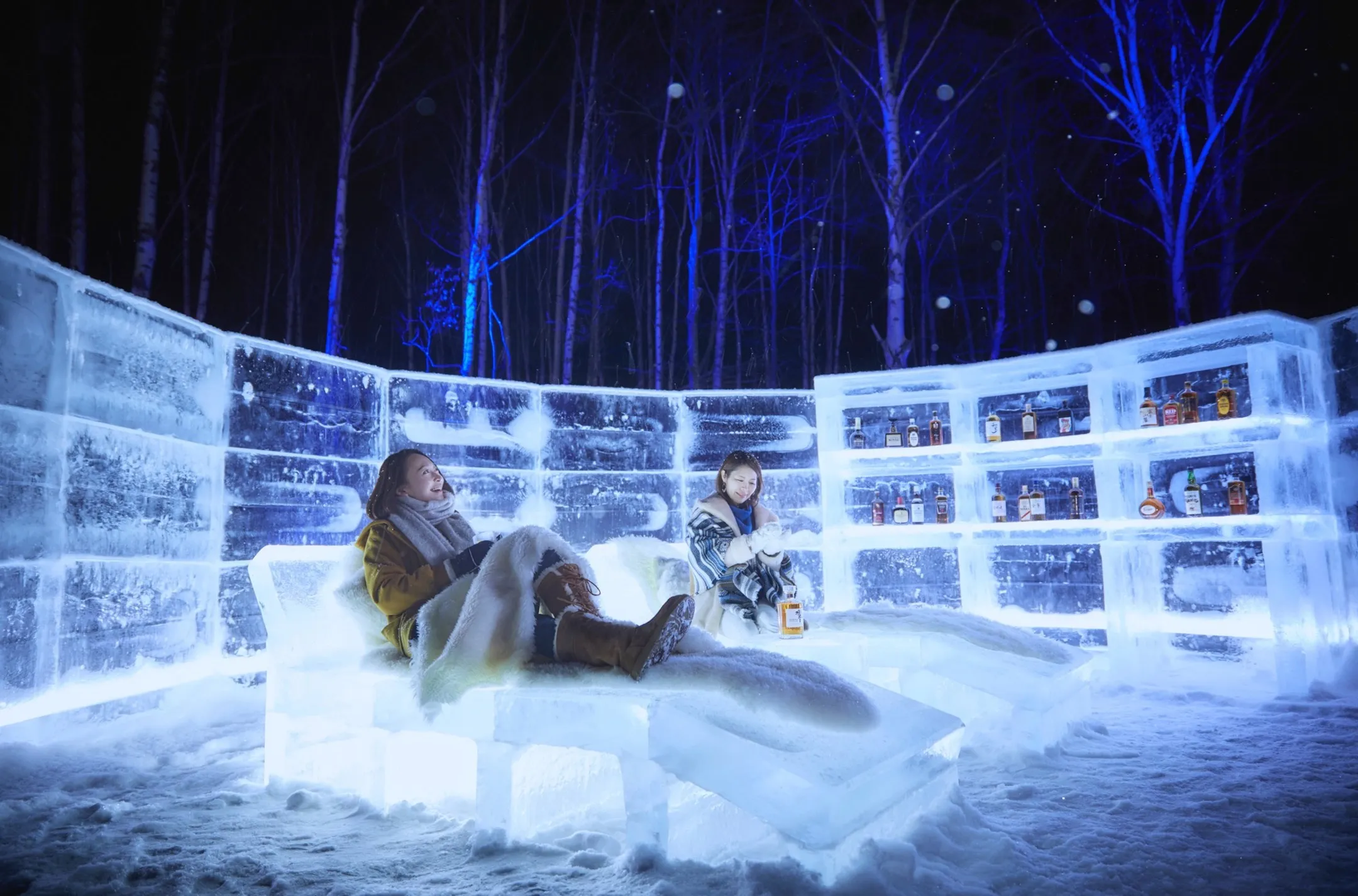 当リゾートが位置する占冠村は、1月~2月にかけて、最低気温が氷点下30度に達するほどに冷え込む地域です。この寒さを活かした体験として氷の街「アイスヴィレッジ」には、氷のホテルが造られます。このホテルは、直径約8.5メートル、高さ約3.5メートルある一枚の氷で造られたドームの形をしています。