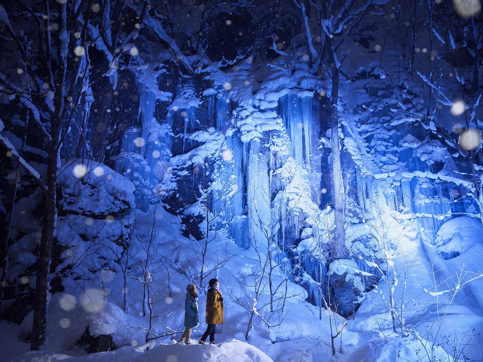 当ホテルの目の前を流れる奥入瀬渓流は、十和田八幡平(とわだはちまんたい)国立公園に属し、豊かな自然と、四季折々の景色が広がります。冬になると、奥入瀬渓流には、寒さによって滝が氷結した「氷瀑」が点在します。そこで当ホテルでは、2018年1月より、現在は宿泊者の多くが参加するほどのプログラムとなった「氷瀑ライトアップツアー」を実施し、3年目を迎える今期、氷瀑を見るだけでは終わらせない、氷瀑を模倣したスイーツを1日10食限定で提供します。ホテルのアクティビティと共に氷瀑づくしの滞在を楽しむことができます。