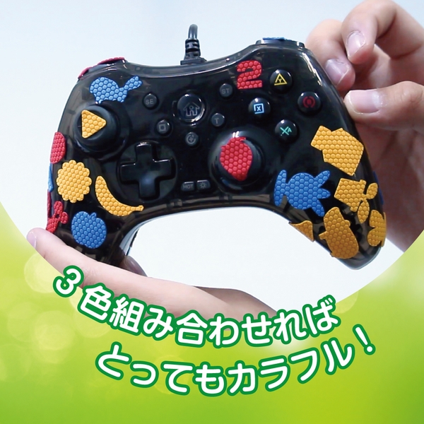 動物や果物など様々な形をしたチップがすべてで50種類以上!好きな形だけを選ぶのも良し、雑多に選ぶのも良し。自分好みにチップを張り付けてコントローラーをカスタマイズしましょう。