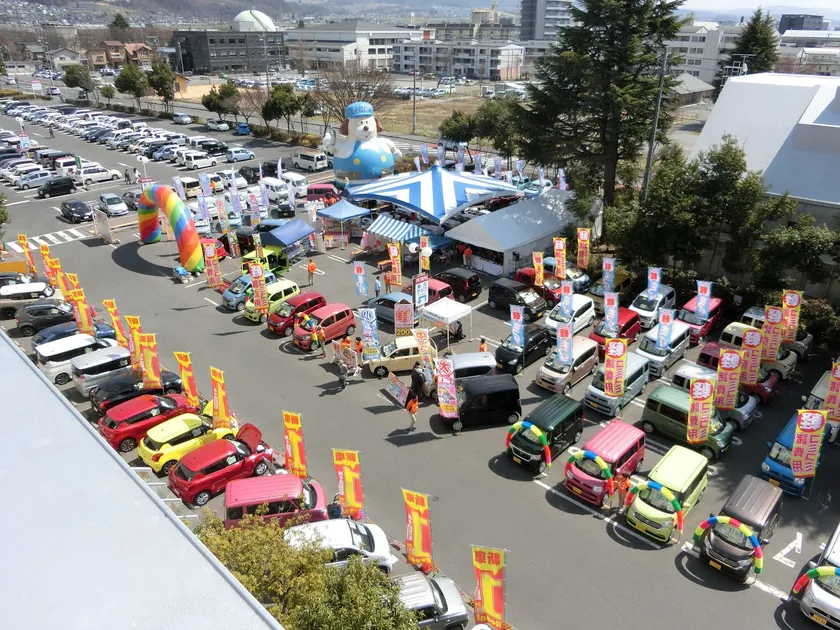 まつもと軽まつりは、新車、未使用車、高年式低走行車などの軽自動車や、コンパクトカーを合わせて合計200台以上を展示。消費税8%即納限定車も数多く展示しています。