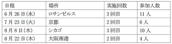 8年目を迎える今回は、海外ではアメリカ・ロサンゼルスとシカゴ、日本では京都と大阪南港の計4か所で開催され、総勢31人の子どもたちが参加しました。
