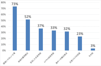→工場見学者は、九州工場に期待している点として、「環境にやさしい工場」73%、「地域の雇用創出」52%、と周辺住民として期待感を持てる工場として回答されました。