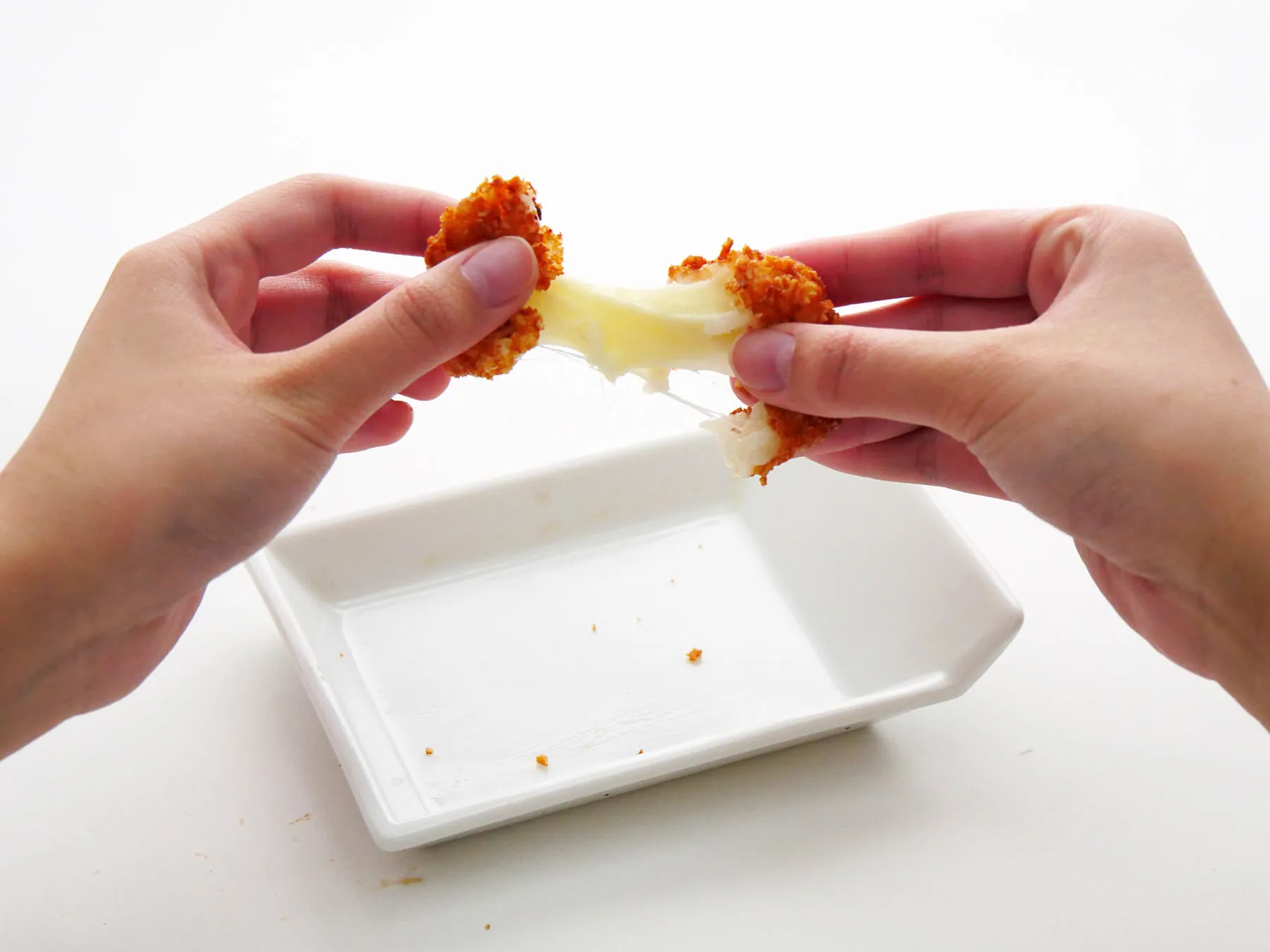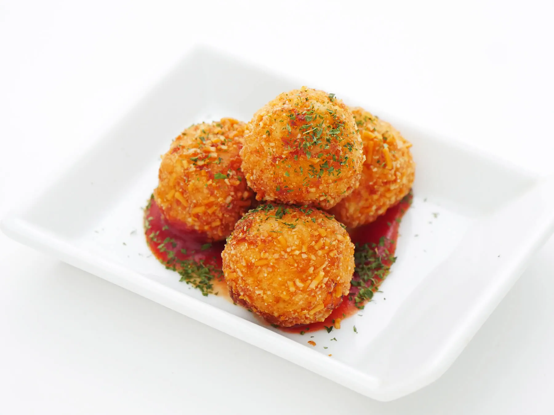 伸びーるチーズを中に閉じ込めベビースターラーメンを衣にし揚げたライスコロッケ。サクサクッ!とした食感と伸びーるチーズをお楽しみください。