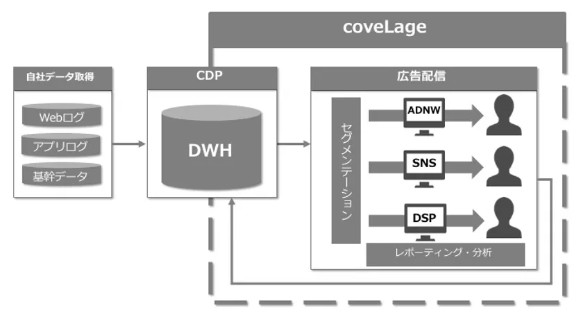 今回Legolissが開発する「coveLage」は、各種CDPからの接続、セグメント設計・実装、広告配信、施策結果のレポーティングまでをオールインパッケージで提供することにより、企業のCDP導入のハードルを下げ、より迅速に、高いレベルでのOne to Oneマーケティングを実現します。