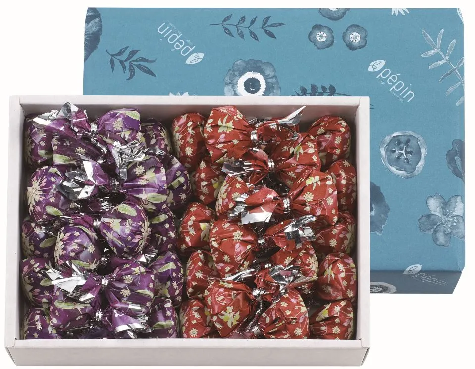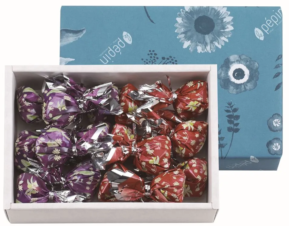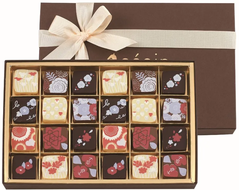 フラワープリントが華やかな、柔らかい口どけのガナッシュ。12種類のバラエティ豊かな風味をお楽しみいただけます。