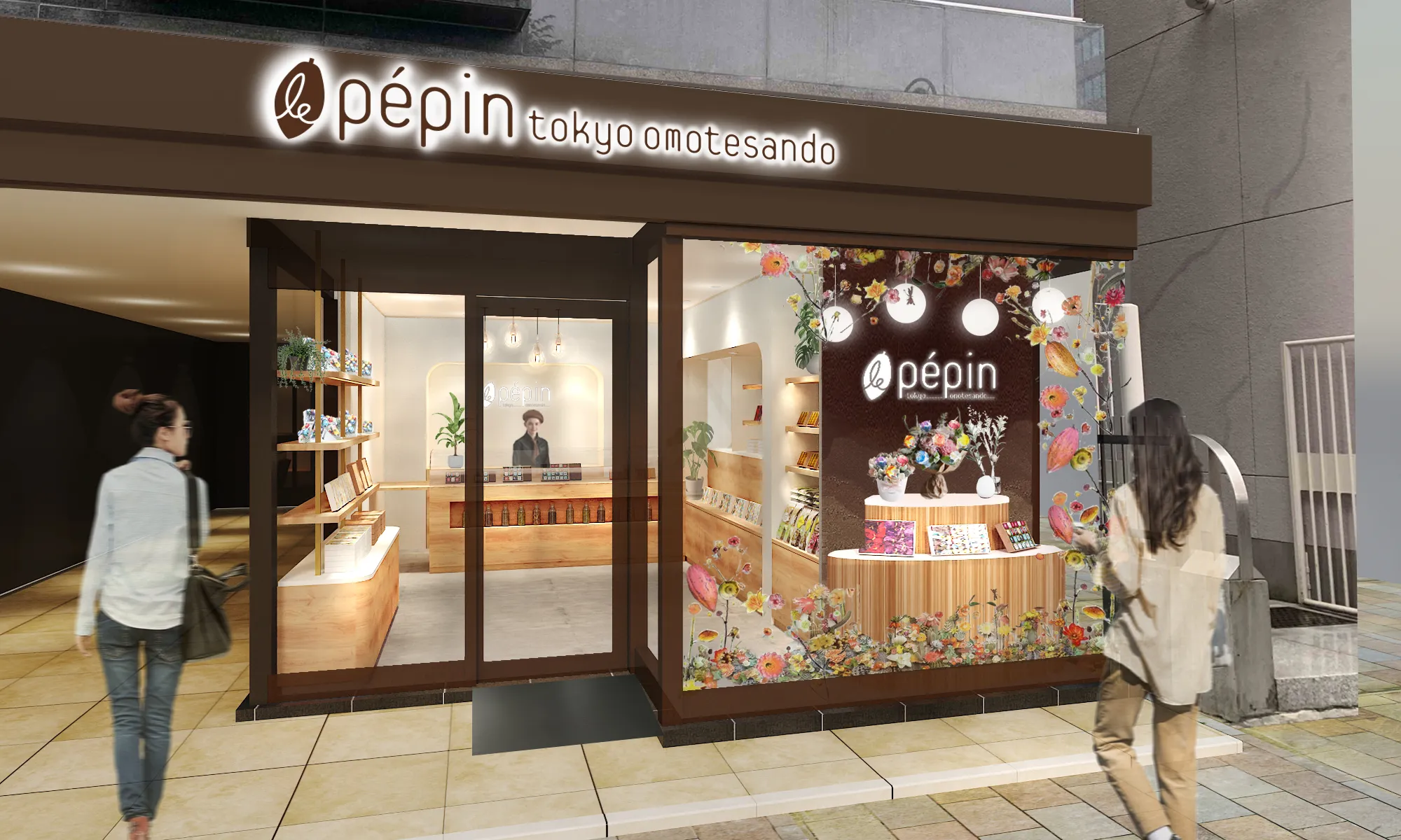 移り変わる季節をコラージュしたようなフラワーショップの店先。「季節」をあらわす“season”という英単語は「種をまく」という意味の “sow” が転じて「種をまくタイミング」という意味から生まれた言葉だという説があります。また、“season”は、フランス語では“assaisoner”といい、食べ物に「おいしくなーれ」と魔法のスパイスをかける意味で使用されたと言われています。そこで、この「種」を、ブランドの名前に掲げようと考えました。フランス語にいくつかある「種」をあらわす言葉の中で“pepin(ペパン)”は「果実をつける植物の種」のことです。ひと粒の種が美しく花開き、やがて大きな果実をつけるように。「ル ペパン」がチョコレートづくりを通じて成長し、たくさんの方に愛されますようにと願いをこめました。