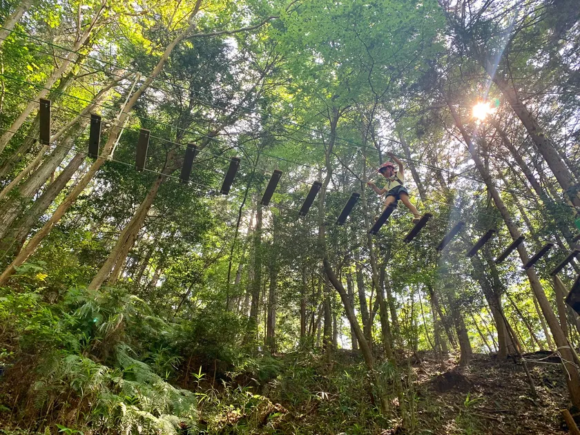 森林空間をそのまま活用した森林活用型アドベンチャーパークです。立ち木や地形を活用してコースを作り、樹上2~15mの高さをハーネスと呼ばれる安全具を装着して移動します。ジップラインが代表的なアクティビティとなり、日本では樹上のアスレチック、大人のアスレチックとも呼ばれています。