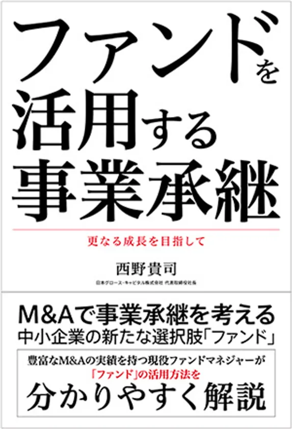 株式会社日本工業新聞社では[企業経営&ビジネス]の新刊、『ファンドを活用する事業承継~更なる成長を目指して~』(日本グロース・キャピタル株式会社、代表取締役社長:西野 貴司著)を9月1日に発行いたしました。