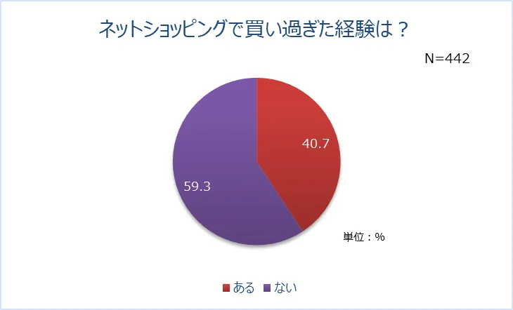 このように便利でお得に買い物できるネットショッピングですが、気を付けなければならないのは“ついつい買い過ぎてしまうこと”です。ネットショッピングので予算を超えて買い過ぎてしまった経験について調査すると、4割以上の人が「ある」(40.7%)と回答。