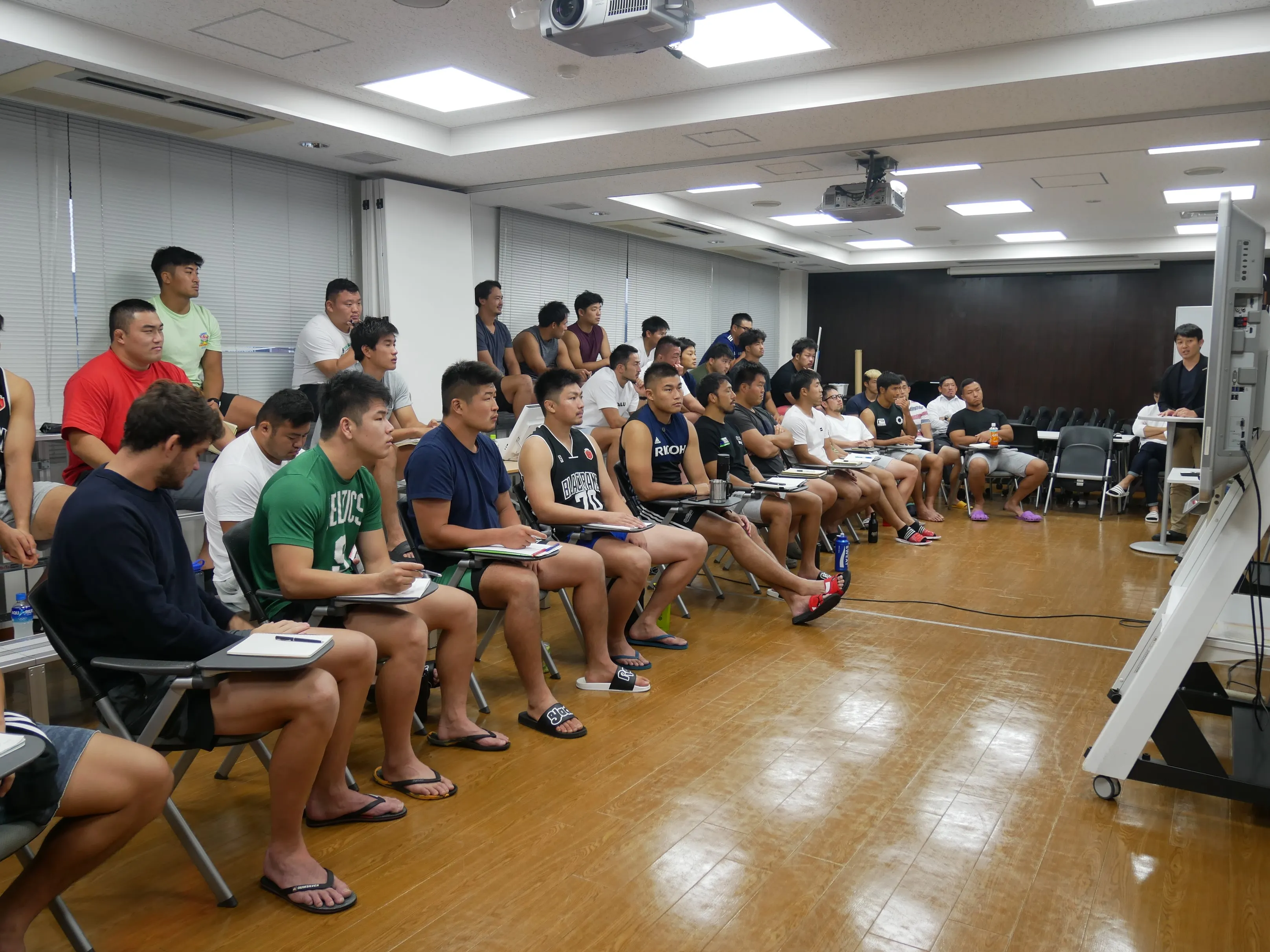 (講義風景) 熱心に耳を傾けるリコーブラックラムズの選手達