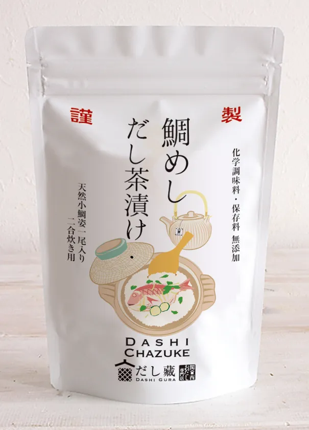 内容:鯛1尾、炊飯用だしパック1袋(20g×1)、茶漬け用だしパック4袋(6g×4)