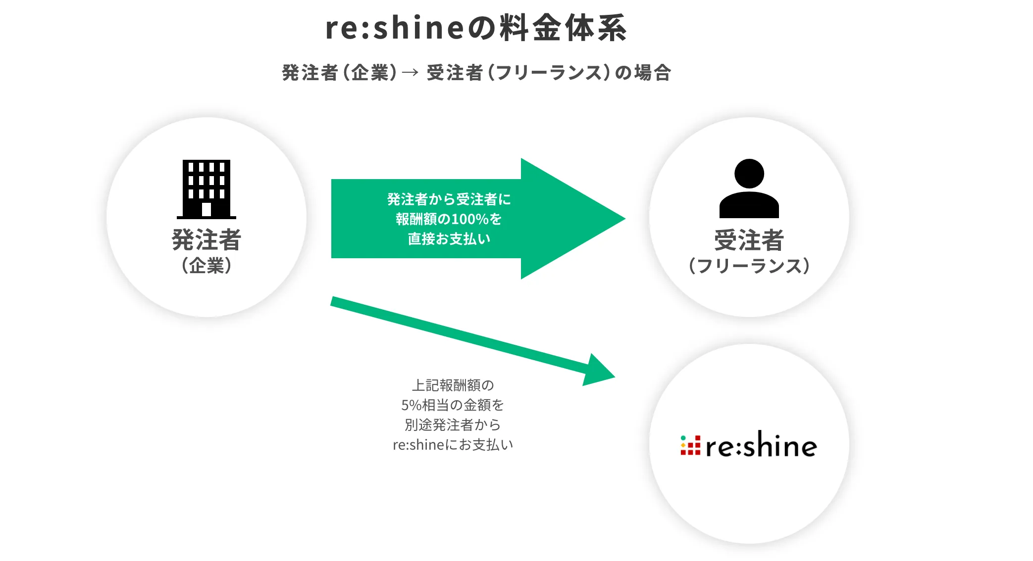 企業とフリーランスの方々との契約は直接契約です。プロジェクトを通して業務を進めていくことで、採用につながる可能性が高いと考えています。また、フリーランスを活用したい企業には「re:shine」を活用し、採用に直結していくフリーランス人材の獲得についてもサポートいたします。