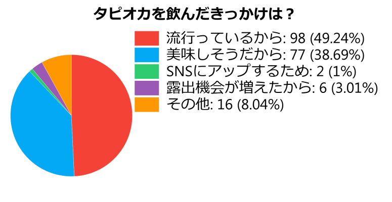 カロリーの高さを気にする声は多いものの、それでも飲みたいと思わせる魅力がタピオカにはあるという結果になりました。