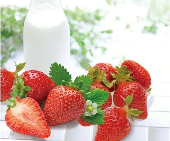 赤くてつやのよい大きな果実が特徴の「あまおう」を贅沢に使用しています。果汁の糖度が高く、濃い甘みの中にほのかな酸味が楽しめます。