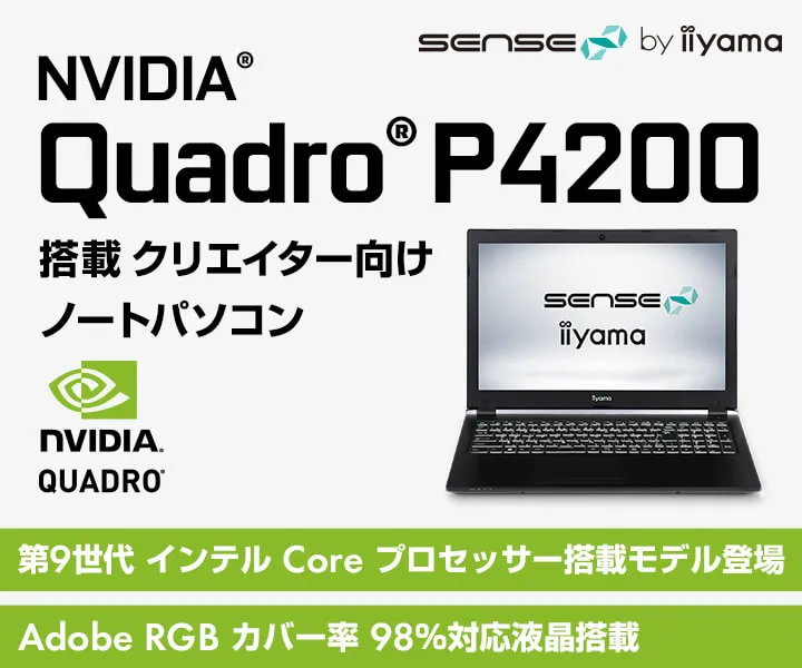 iiyama PC「SENSE∞(センス インフィニティ)」より、 NVIDIA(R) Quadro(R) P4200を搭載した クリエイター向けノートパソコンを発売開始