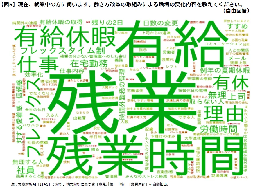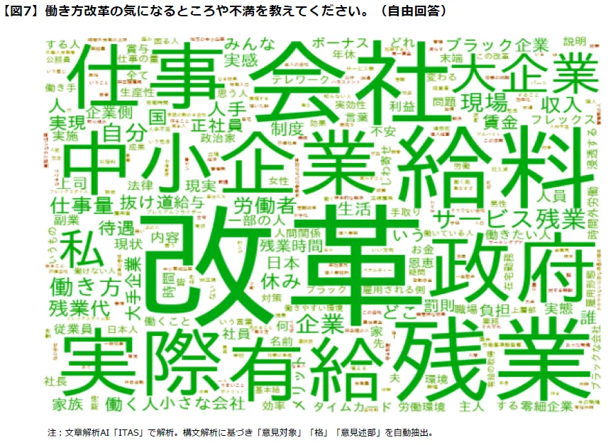 5:働き方改革の懸念点や不安、「残業」「給料」「有給」に関する意見が多数。(図7)