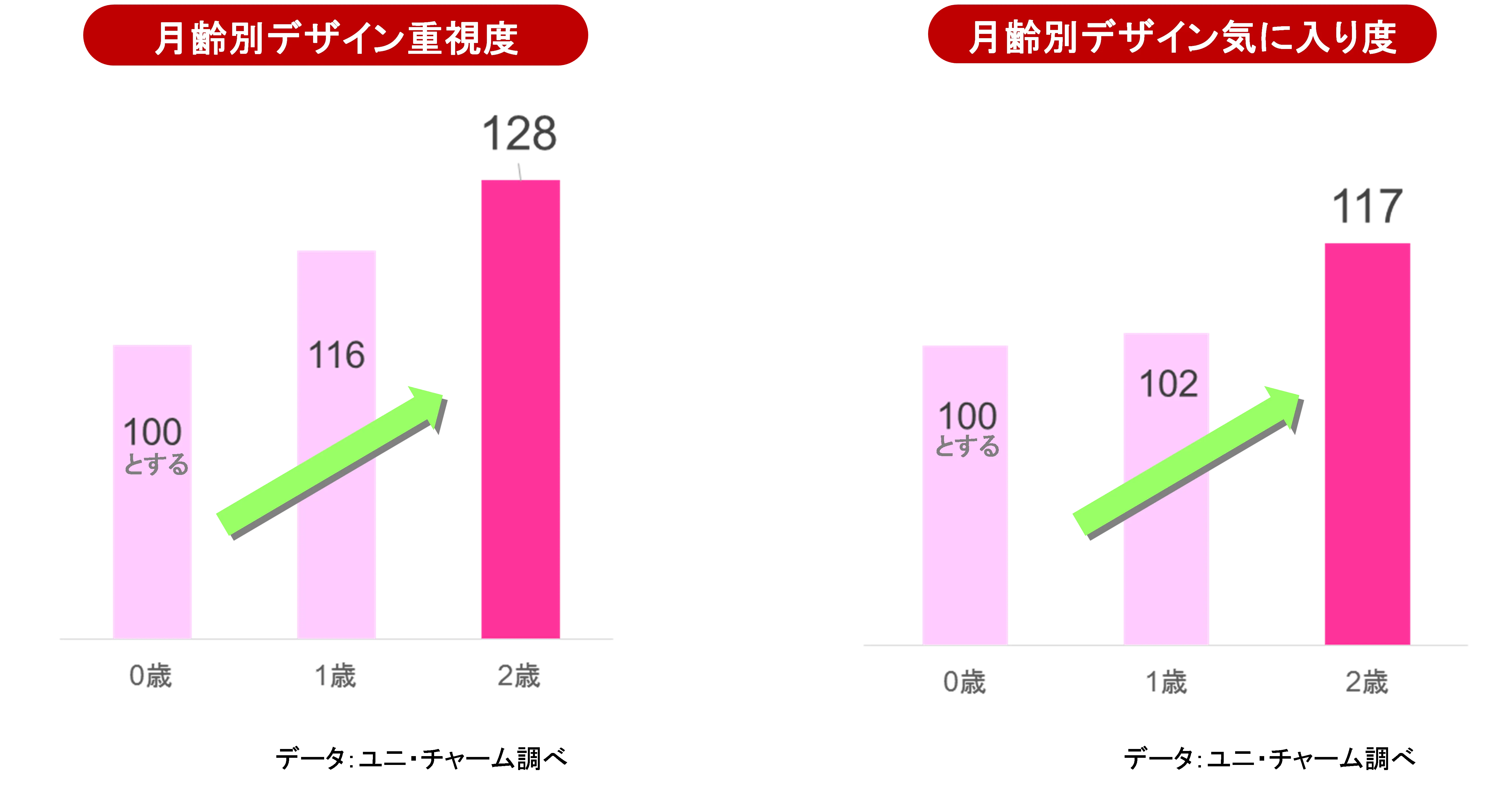 一方で、月齢が高くなると「デザイン」のニーズが拡大することがわかりました。