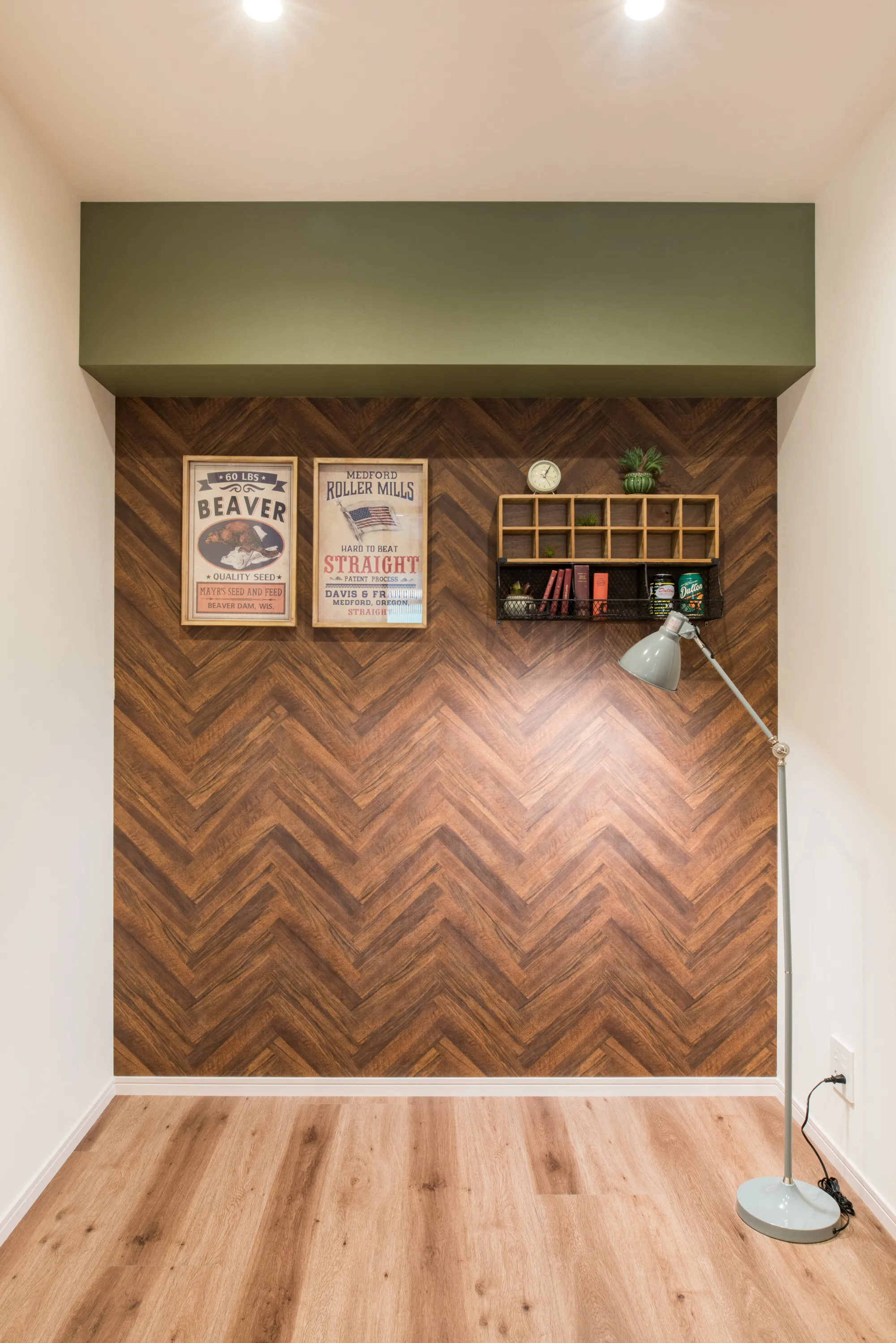 アクセントの壁には全面に下地を組んでおり、棚や雑貨を取り付けるなど、住んでからも好みの空間に自由にアレンジできます。