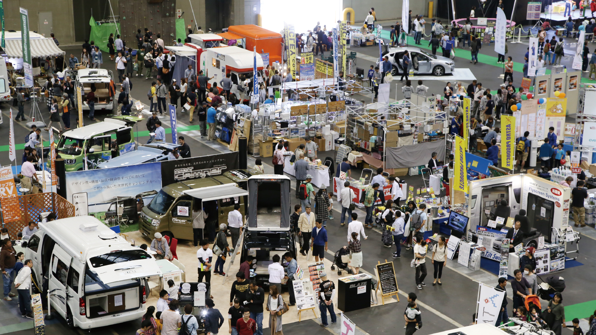春と秋の年2回開催しているこのイベントは、キャンピングカーやキャンピングトレーラーなどアウトドアで楽しめる車を約150台展示、東海地区最大級の規模を誇っています。