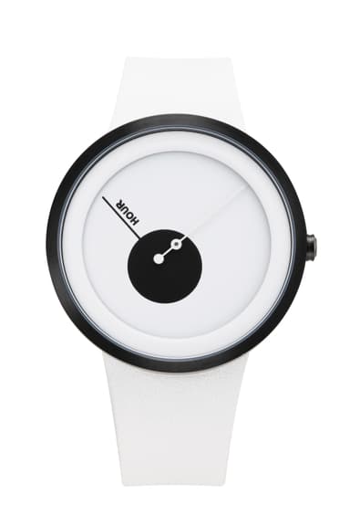 分針の線と点のデザインは1分ごとの変化ではなく数秒ごとに刻々と刻む時間の変化、時針の線と面のデザインは時刻の進み方がまるで衛星のように周回する動きで時を示すという、新しい時の概念を創り上げました。