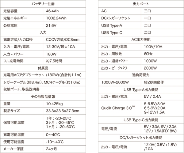 1000Whにパワーアップ!たっぷり大容量・長時間