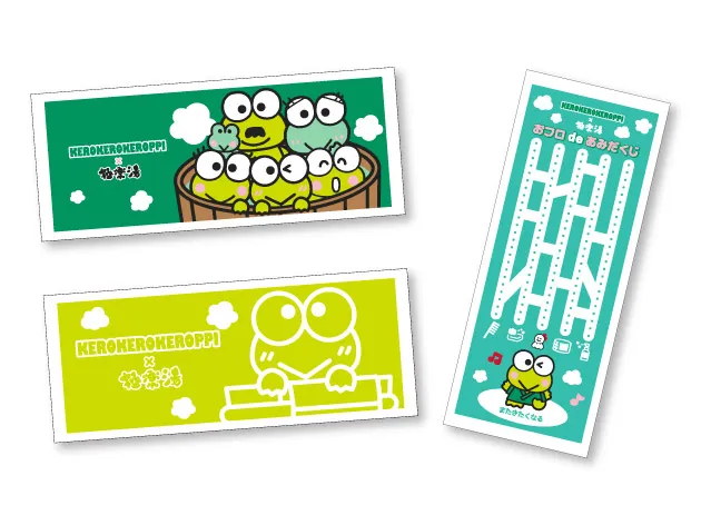 コラボ期間中は、限定デザインのグッズ販売やコースターがもらえるコラボメニューの販売、コラボ風呂「けろけろけろっぴの湯」を行います。(一部対象外の店舗あり)