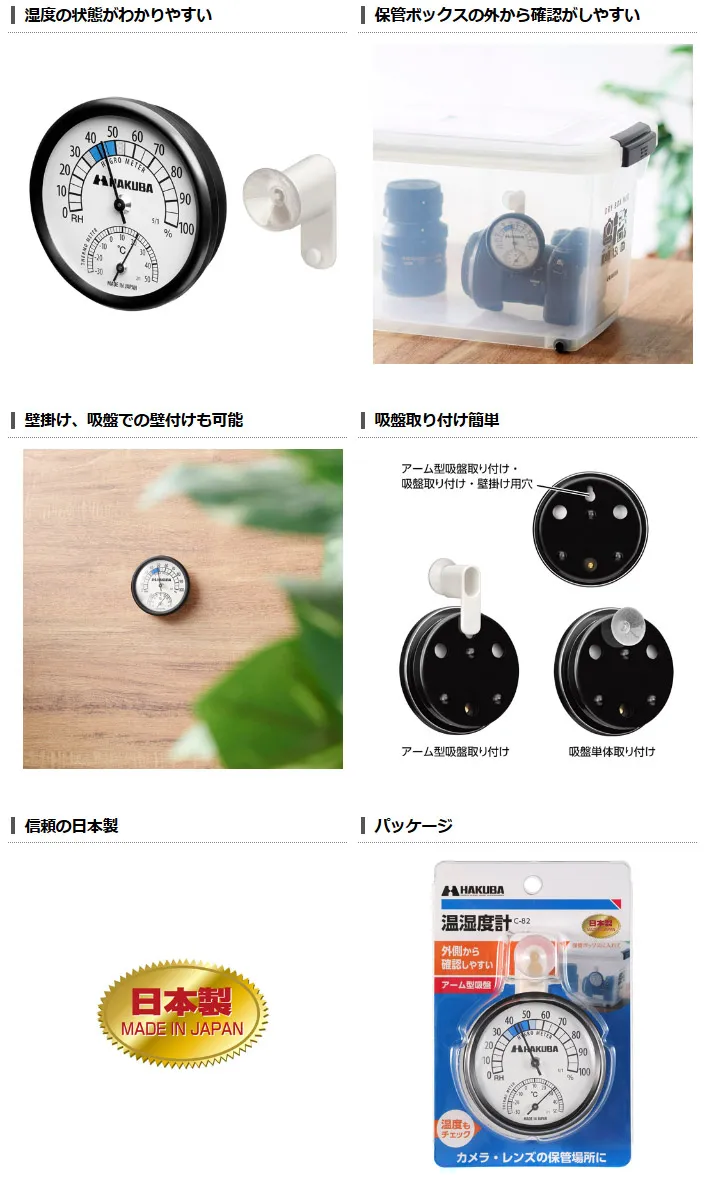 ハクバ写真産業株式会社(本社:東京都墨田区)は、カメラ・レンズの保管場所の湿度と温度管理に便利な「ハクバ 温湿度計 C-82」と「湿度計 C-83」の2種を発売いたします。