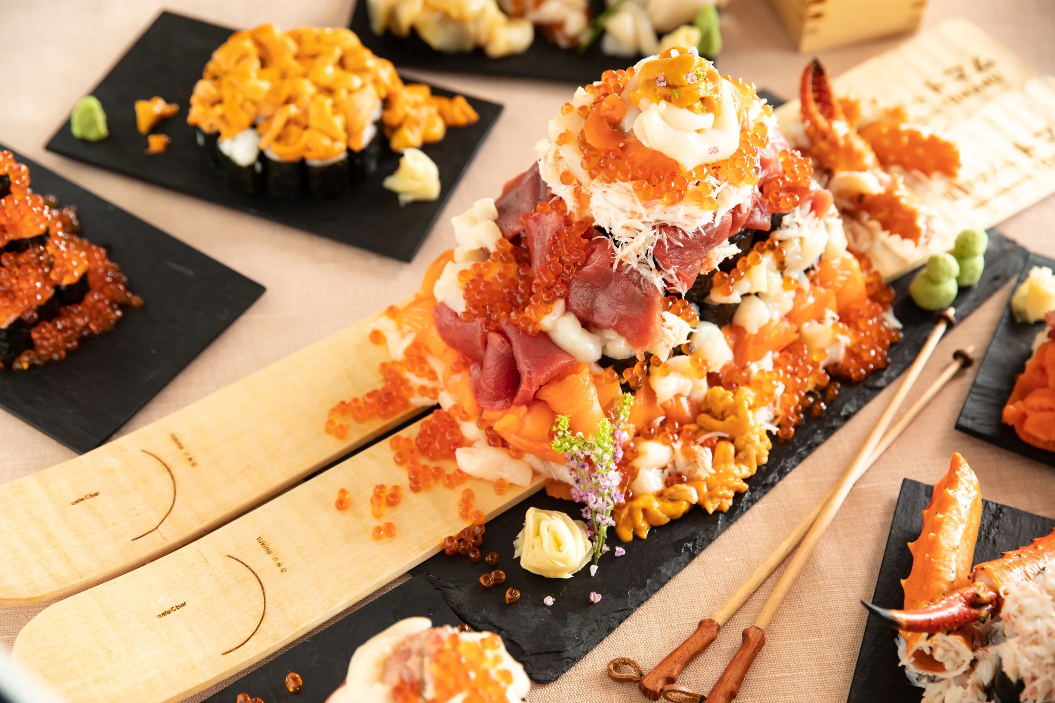 北海道では、寿司や海鮮丼にいくらをこぼれるほど豪快に盛り付けることを「こぼれいくら」と表現します。当リゾートでは北海道ならではの食べ方で、海鮮を贅沢に味わっていただきたいという想いから、「海鮮こぼれフェス」の開催に至りました。当イベントを開催するcafe&bar「つきの」は、スキー場の中腹に位置する日本初のスキーインスキーアウトヴィレッジ「ホタルストリート」内の店舗です。そのため、海の幸である海鮮をスキー場内で贅沢に味わえます。