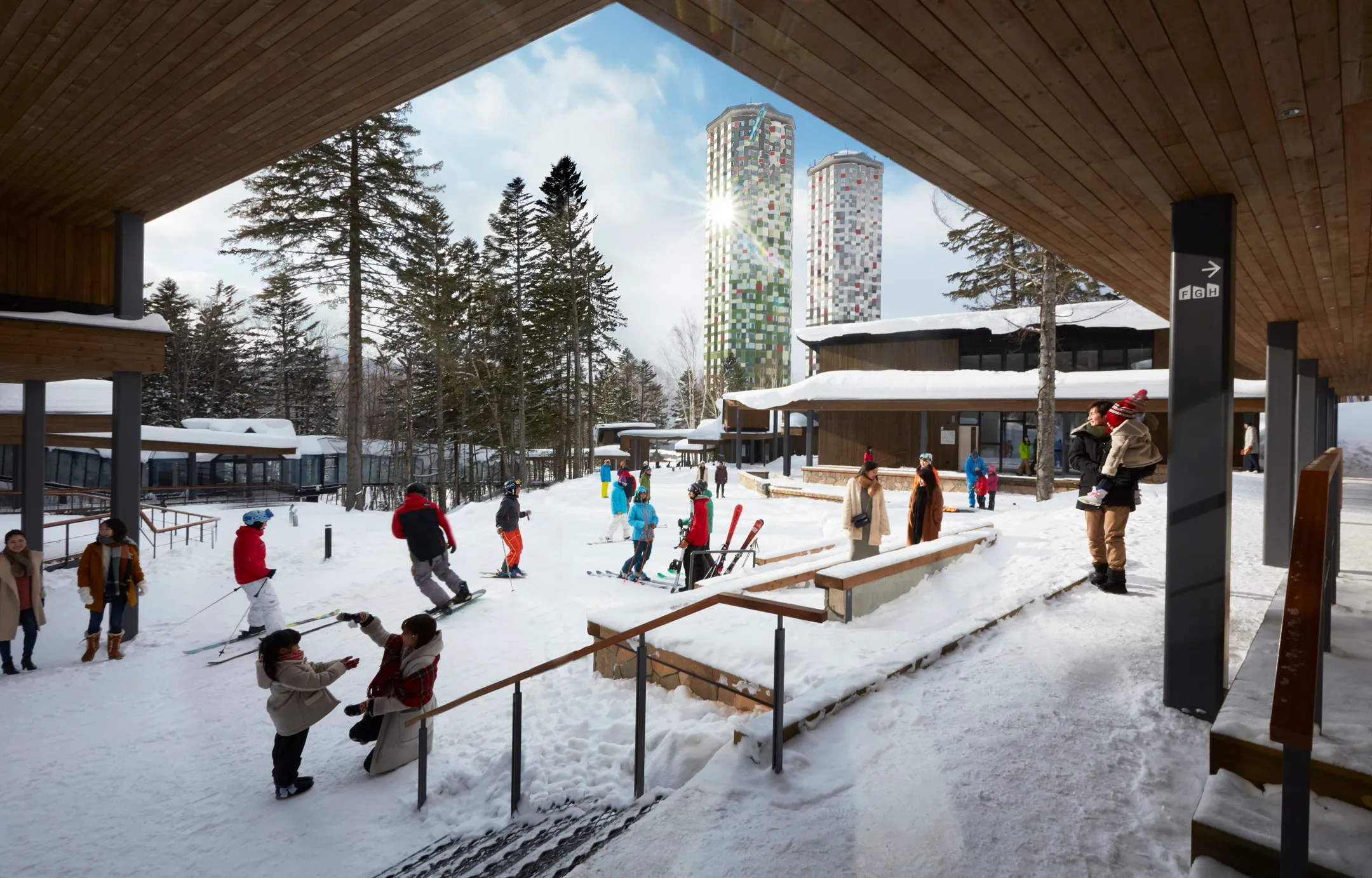 スキー場の中腹に位置するスキーインスキーアウトヴィレッジ「ホタルストリート」