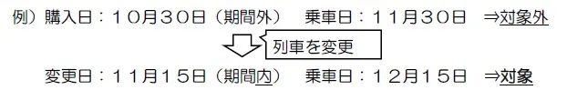 ・実施期間外に購入した特急券でも実施期間内に対象となる