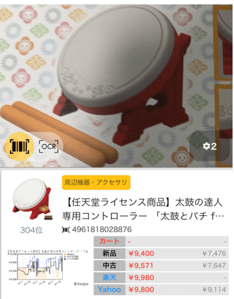 ヤフーショッピングの価格も一目でわかります。
