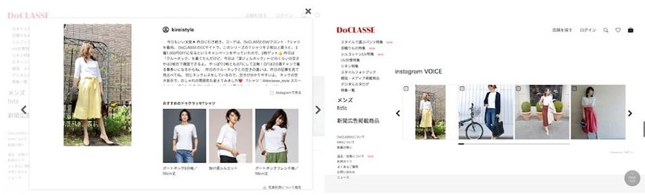 UGCはコーディネートの提案をして、商品の複数購買を促すために活用を始めました。 結果として、普段からInstagramを使っていて、かつDoCLASSEの服を普段から着てくださっているお客様のコンテンツは、リアルなコーディネートの提案コンテンツとなりました。現在UGCを使ったページのほうがCVRが1.6倍高くなっていますので、イメージ通りの良い運用ができていると評価しています。