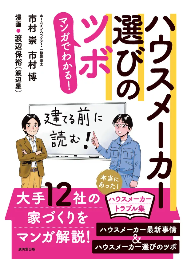 株式会社 廣済堂出版(本社:東京都千代田区、代表取締役:後藤 高志)は、著者 市村 崇・市村 博による大手ハウスメーカー12社の家づくり(工法など)を実名解説する「マンガでわかる!ハウスメーカー選びのツボ」を10月2日に出版いたしました。