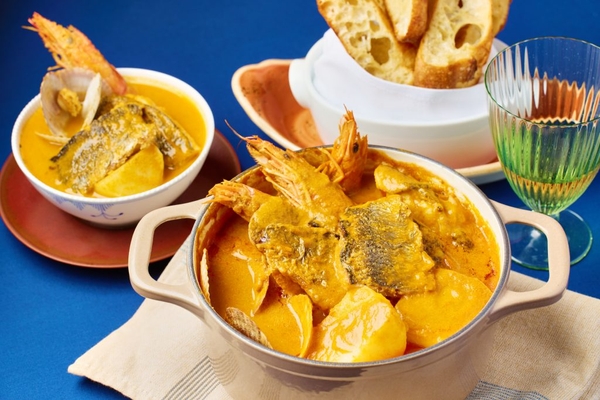 体の中からも温かくなるように船上では、ニシンのブイヤベースを用意します。小樽の代表的な魚・ニシンをはじめとして、エビやイカ、ホタテの稚貝などの魚介をたっぷりと使用しました。トマトと魚介の旨みが凝縮したスープです。ブイヤベースに合う、白ワインも一緒に用意します。